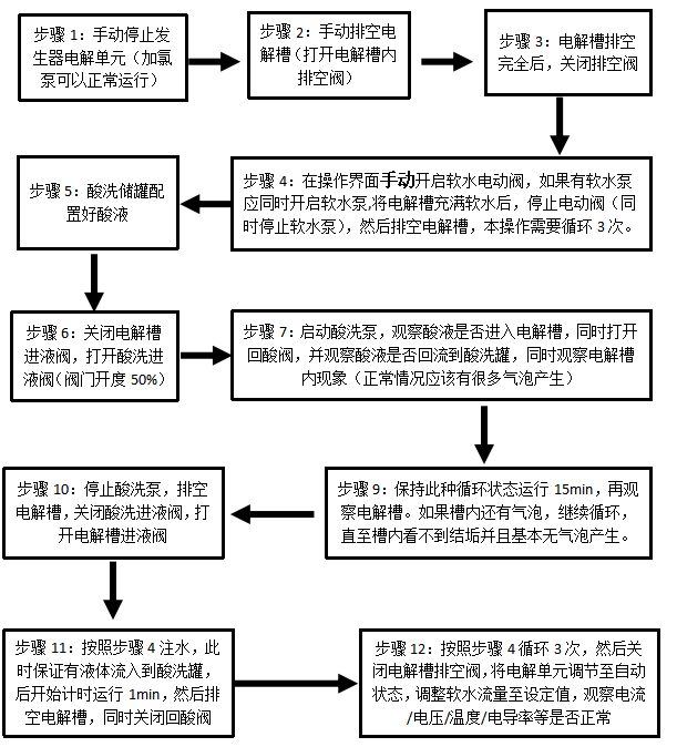 次氯酸钠发生器电解槽酸性操作说明: